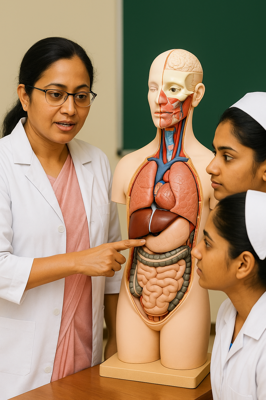 We combine classroom lectures with hospital training, digital learning resources, and practical labs to help students learn effectively.